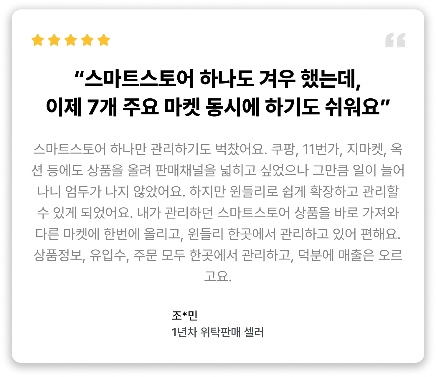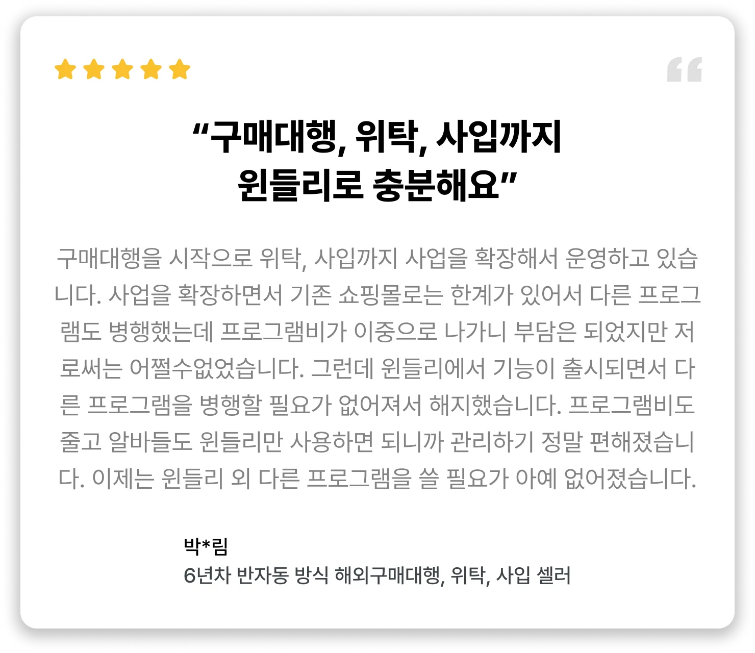 상품수집부터 주문관리까지 이제 윈들리가 다 도와드려요.