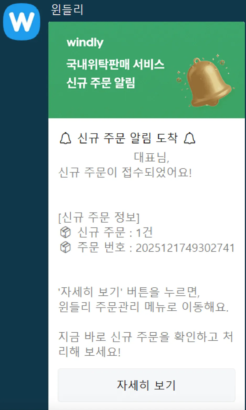 신규 주문 발생 시 카카오톡으로 알림을 받아